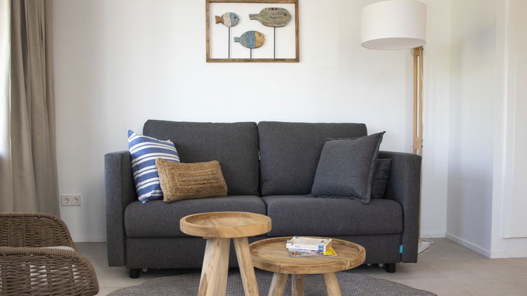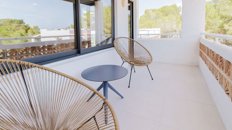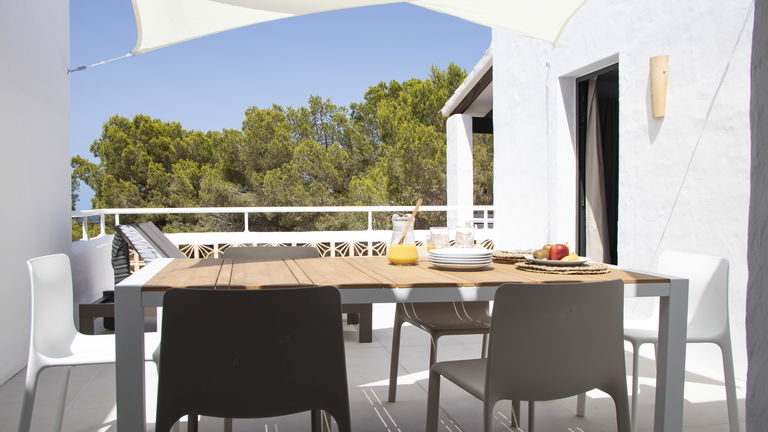 Located on the first floor, this 2-bedroom apartment has a 24 m² private terrace with views of the pine forest and a table and chairs. There is a kitchenette with fridge, kitchenware and the living room includes a sofa and dining area. All the apartments have air conditioning.