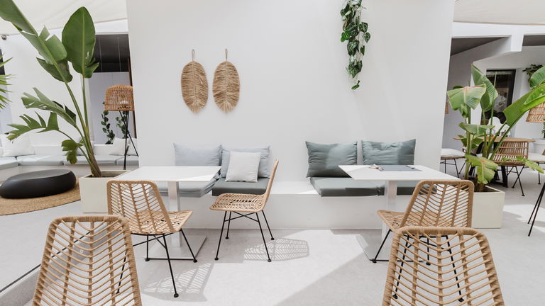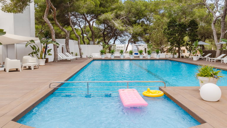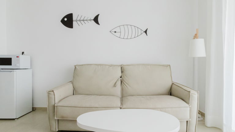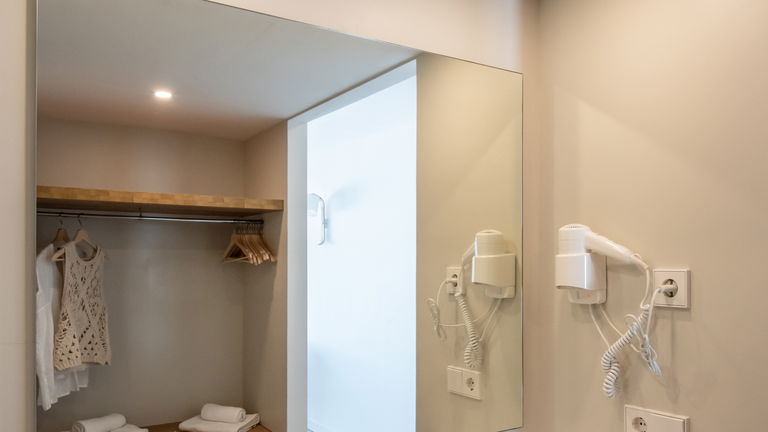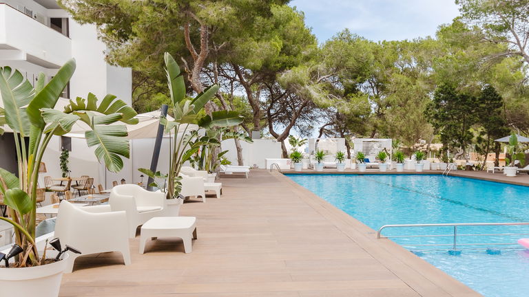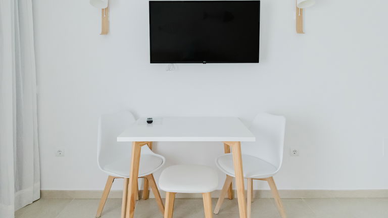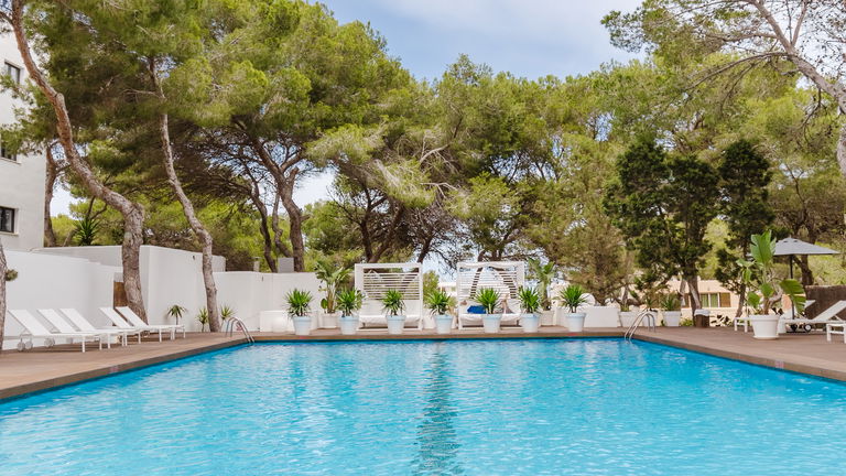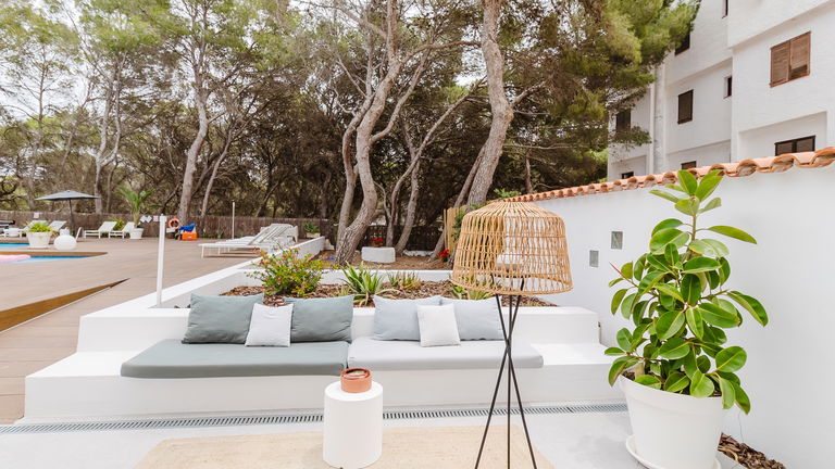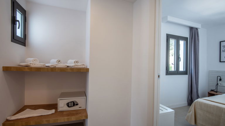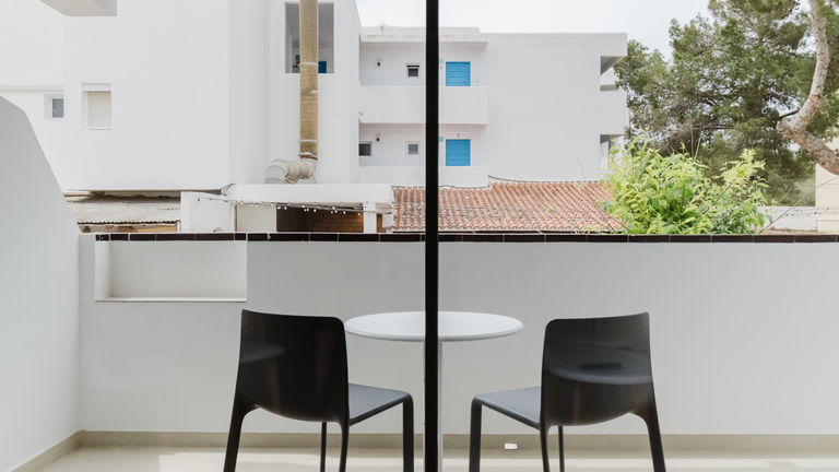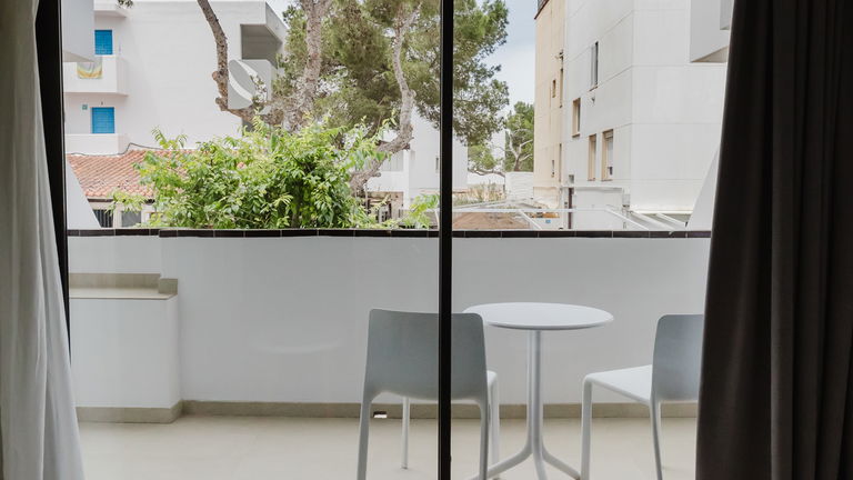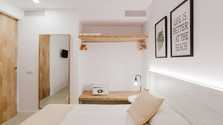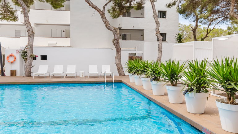 One-bedroom apartments with two single beds, bathroom, fully equipped kitchen with Italian coffee maker and living-dining room with sofa bed, air conditioning and safe. They are characterized by their great luminosity and modern style as well as having a swimming pool, outdoor solarium and cafeteria.