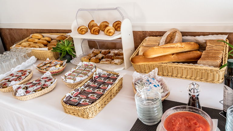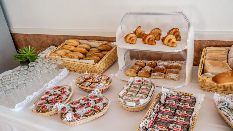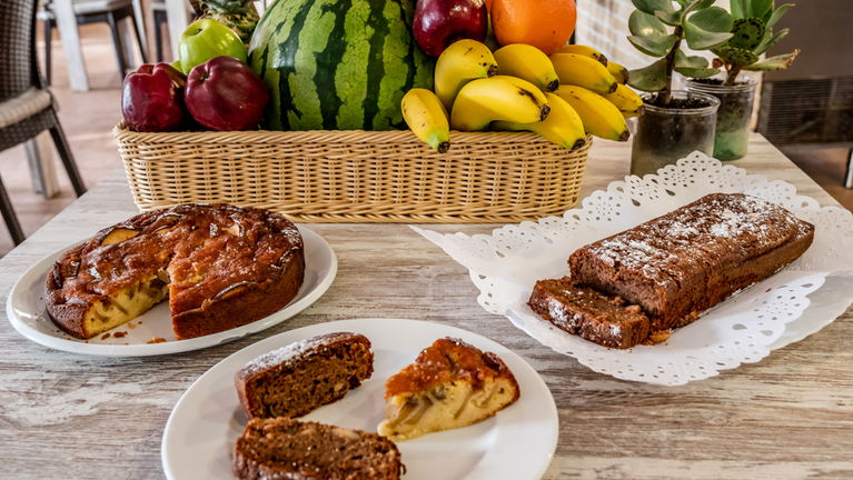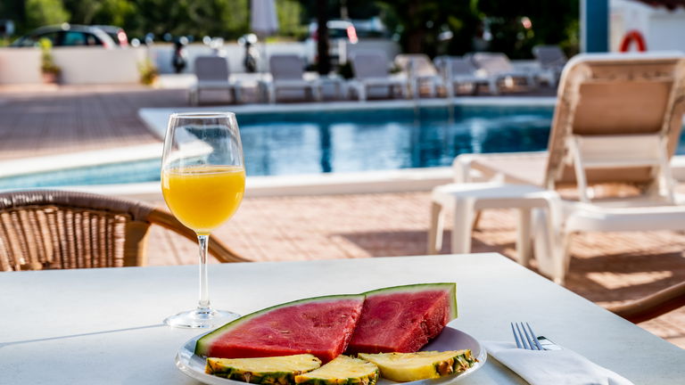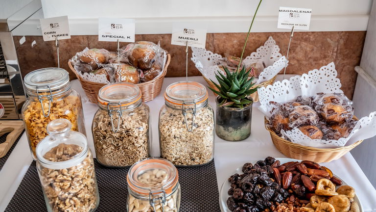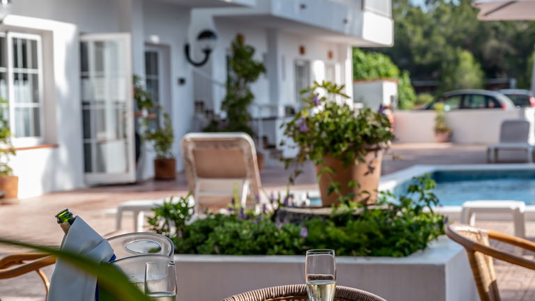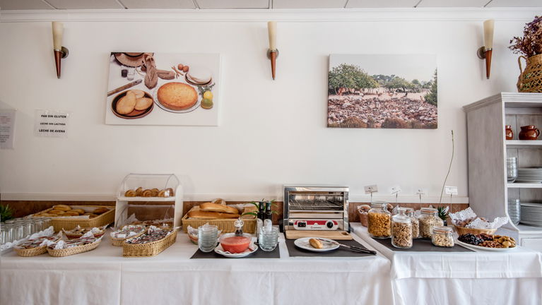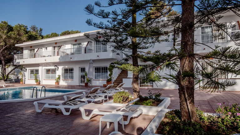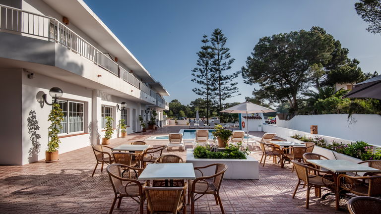 El hostal ofrece su desayuno en el mismo establecimiento pero si contrata la opción de Media Pensión, la cena se servirá en los Bungalows Es Pins, situado a 500m.