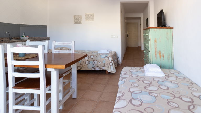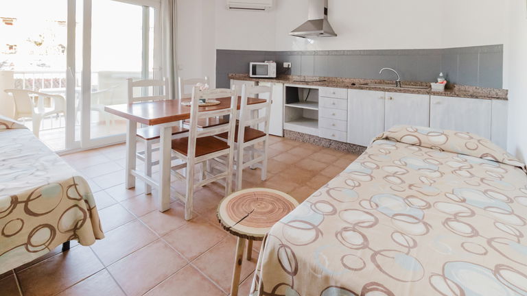 Apartamentos de una habitación para un máximo de 4 personas ideales para parejas o familias pequeñas. Los apartamentos constan de una habitación con dos camas individuales, baño con bañera/ducha, cocina y dos camas supletorias en el salón.