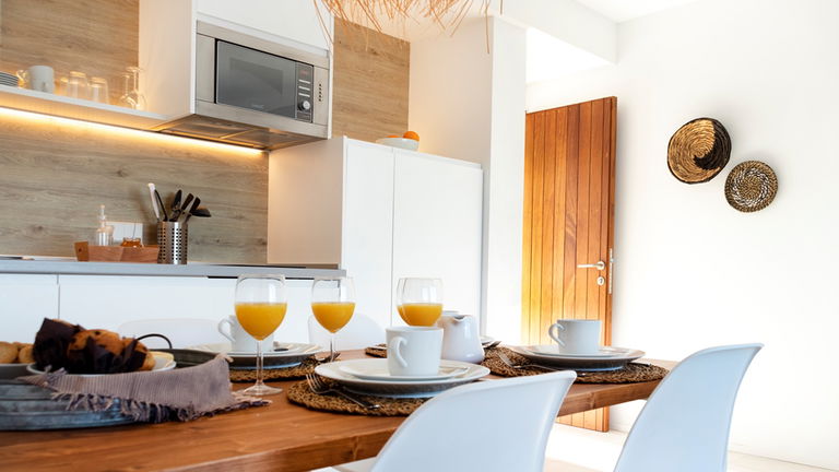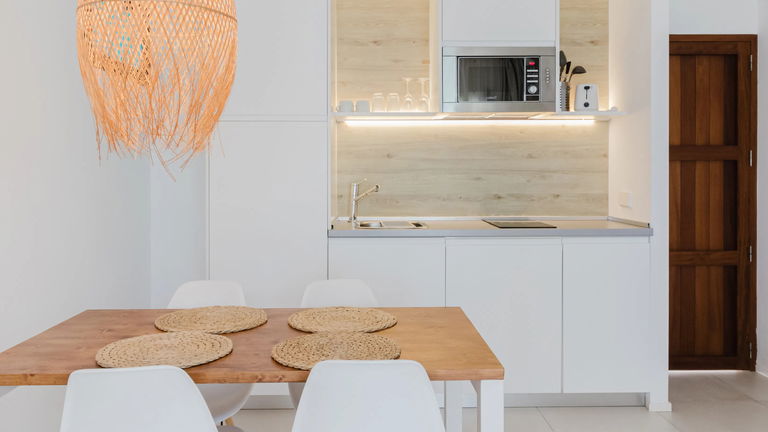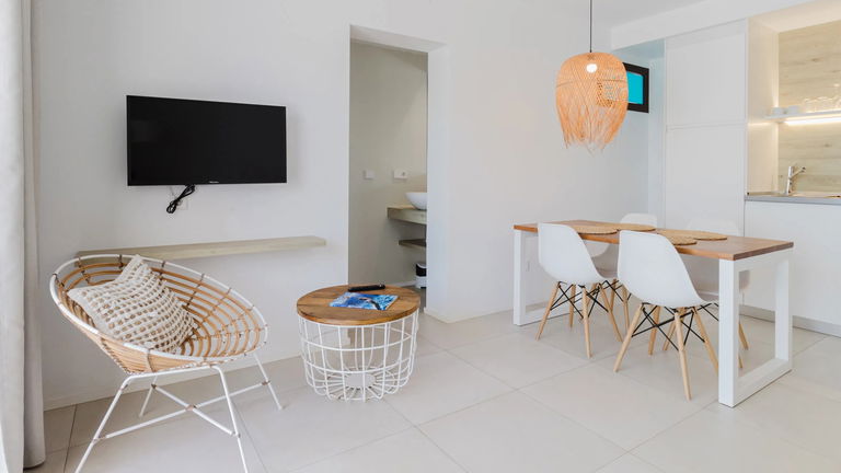 Apartamento para 4 personas situado en planta alta y planta baja que dispone de cama doble, sofá-cama, cocina totalmente equipada con cafetera italiana y aire acondicionado.